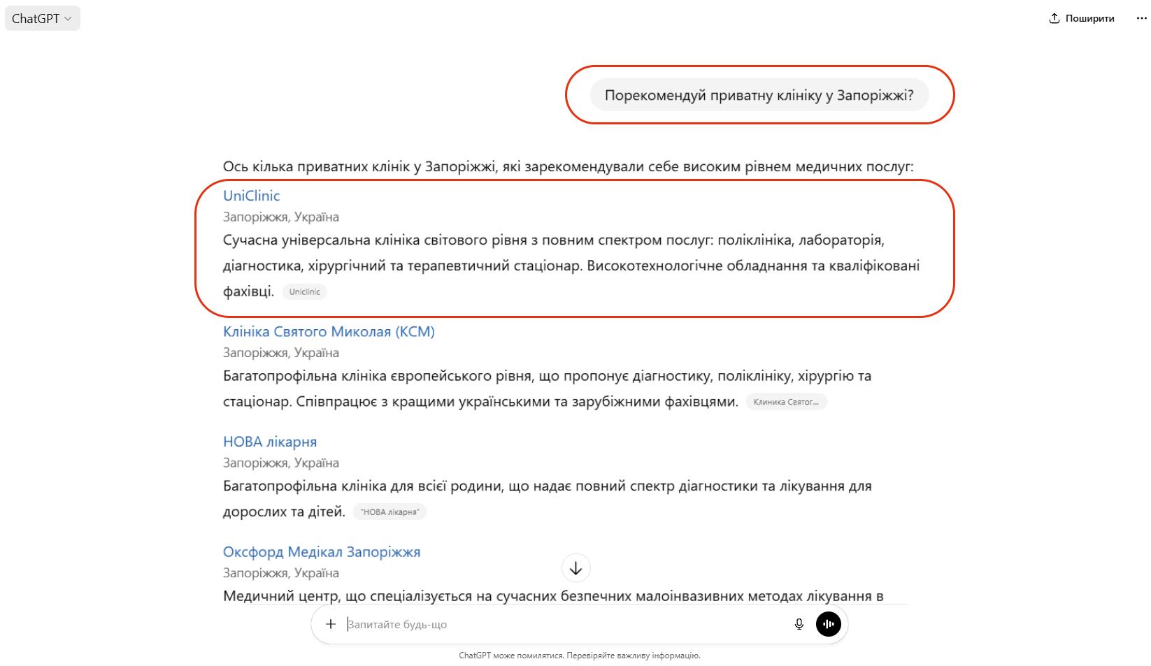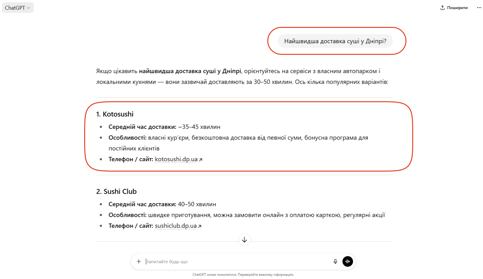 Користувач бачить ваш бренд у відповідях AI і підсвідомо сприймає його як експерта у вашій ніші.